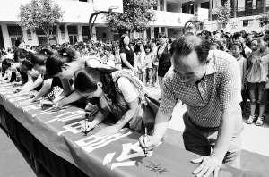 近日,鹿邑县谷阳办事处中心小学举行“作风转变暨环境创优”主题教育活动师生宣誓签名仪式。全校教师庄严宣誓,并在横幅上郑重地签字承诺。全体教师一致表示,要积极参与当前在全市开展的“作风转变暨环境创优”主题教育活动,践行高尚师德,教书育人,为全县教育质量提升做出自己应有的贡献。(冯伟 摄)