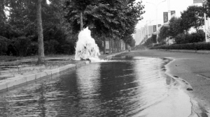 6月19日傍晚,不知何时何因,周口大道上的一个消火栓破损,水流如喷泉。