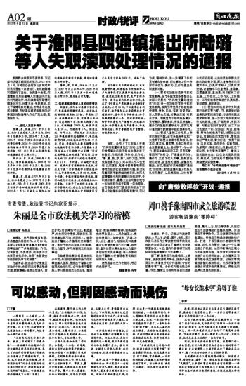 关于淮阳县四通镇派出所陆璐等人失职渎职处理情况的通报