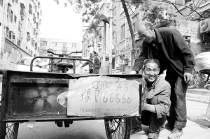 生活喜乐取决于自己的人生观。住在川汇区七一路办事处文明社区五交化家属院的破烂王老孙,虽然生活拮据却乐观生活。老孙每日5时起床锻炼身体,6时开始骑着他的这辆改装“奥迪”车捡破烂,8时至下午18时收购破烂,中途转卖,收入不多,但足已养家,老孙很快乐。   徐雪然 摄