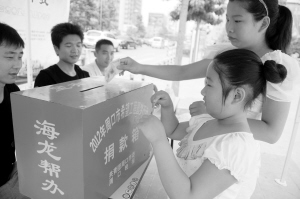 当日上午7时许,《海龙帮办》刚刚支起“摊位”,一位小学生就把一元钱投入爱心捐款箱中,“叔叔,我只有一块钱,是我的一点心意。”据了解,这位小学生是本报的一名小记者。