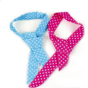 这种冰巾领带与冬天里暖手的小袋子类似,只是棉布包的是冰晶。使用时,将冰巾中间部分浸泡在水中,用手轻揉制冷晶体,吸水十分钟左右,将其擦干后即可戴于颈部、头部、手腕等位置,利用水分蒸发吸热降温的原理,使人凉爽,冰巾可反复使用。需要注意的是,骤冷容易引起身体不适,体弱者慎用。