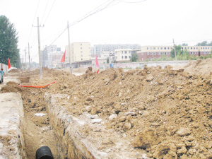 施工进度:目前,原有路面开挖近3000平方米,新铺污水管网1000米,自来水给水管网300米。原来的文明路雨污管道混流,道路改造实行雨污分流后,地下管道直径由原来的60厘米升级至80~100厘米,排水能力将大大提高。