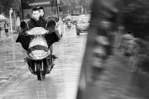 6月27日,在武汉市武昌区,市民在雨中出行。