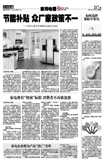 家电将有“智商”标准 消费者不再被忽悠