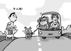 网络上喜欢将人分为“正常的”、“文艺的”和“二B”三种,我一直没有很好弄懂2B的意思,看来,这种边开车(即使是坐在副驾驶位)边牵狗的行为,大概可以归纳为2B类型了。因为,这种行为除了装之外,着实想象不出有什么意义。