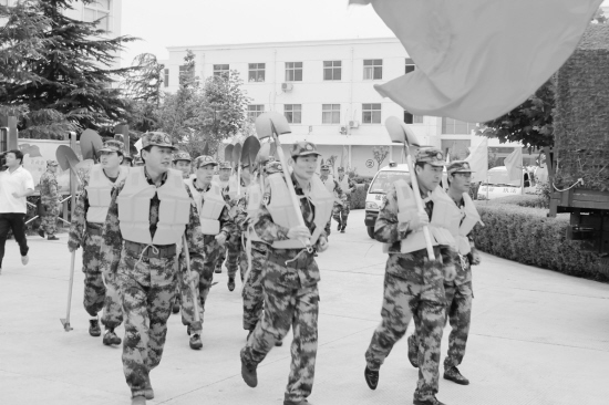 6月28日上午,针对即将到来的汛期,周口预备役某团迅速组织130多名兵员举行了一次防汛演练,以提高遂行抗洪抢险任务的能力,提高防汛抢险技术水平。 晚报记者 朱东一 摄 线索提供 郭占伟