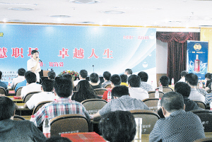 6月29日,由河南新动力管理咨询公司承办、沱牌舍得酒业赞助的“智慧职场 卓越人生”高端讲座在周口举行。图为著名媒体高管、实战管理培训专家贺海毅在为200多名企业家作精彩演讲。