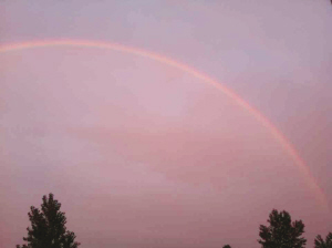 昨晚,雨霁云收,东方天空出现一道亮丽彩虹。 晚报记者 朱海龙 摄