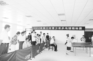 近日,2012年周口市青少年乒乓球锦标赛在扶沟县聋哑学校开幕。此次锦标赛旨是通过比赛发现和选拔一批优秀的乒乓球后备人才,为周口市参加河南省第十二届运动会提供乒乓球项目的人才保障。据了解,该比赛共有来自全市的9支代表队参加,运动员140多人,教练员20人,裁判员20人,比赛历时3天。