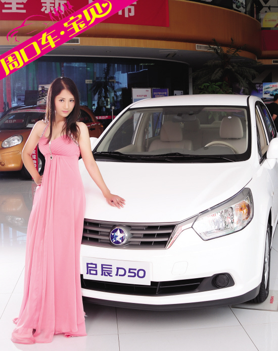 车辆提供:周口启辰南环店 车型: 启辰D50 尺寸:4480/1695/1535mm 驱动方式: 前驱 发动机功率: 86kw/6000rpm 排量: 1.6L 变速箱: 自动4速 整备质量:1145kg 宝贝资料 ●姓名:程程 ●年龄:22岁 ●职业:销售顾问 ●血型:O型 ●爱好:旅游 ●体重:50KG ●身高:167cm ●三围:34/25/37 ●星座:处女座 本期摄影:维纳斯婚纱摄影 之启辰D50宝贝 本栏目合作热线:8599345 宝贝报名热线:8599370