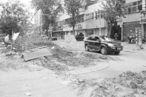 昨日10时30分许,记者在文明南路看到,该路段主车道的路槽已开挖,人行道两旁堆起了高高的土堆。持续数日的雨水,使整个路面泥泞不堪。附近居民林女士抬起脚让记者看,她的黑鞋已经变成了黄色的,脚底沾满了厚厚的黄泥,裤脚上也溅上了很多泥水。“这雨一直不见停,你瞧,这路修着修着也停工了,搞得天天回家都跟下乡似的,真受罪。”一位在街口摆摊的老大爷告诉记者,这条路已停止施工好几天了,不过地下的雨污水管道都已经铺好了,“现在就盼着天晴了好施工,别影响了工期,不然拖下去俺的生意都受影响了。”记者随后在文明中路看到,该路段西侧的人行道上搭起了临时工棚,几名工人正来回运送泥土。“还差4根污水管道,埋好后就跟路对面的管网全部对接了。”一名施工人员告诉记者。而文明北路的路面由于已经做好一层灰土层,没有泥潭遍布的情况,相对来说对行人车辆通行的影响不是很大。六一路路面灰土层也已做好,等天晴好铺装最后一层柏油即可。