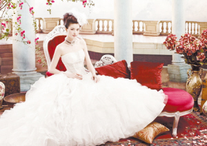 宫廷风格是婚纱的基本潮流之一,如今的时尚界又吹起复古风,繁复的奢华婚纱再次回来。洛可可造型、堆积的花朵装饰、浪漫的荷叶边、精致的蕾丝,都将女人的细腻而又浪漫的心思刻画得淋漓尽致。丰富的分层设计体现出精致的工艺,从卷曲的覆盖式裙摆、不对称的褶皱到立体的花朵图案,都增加了婚纱的浪漫风情。这一季,复古宫廷式婚纱依然活跃在时尚的舞台,受到新娘的追捧。