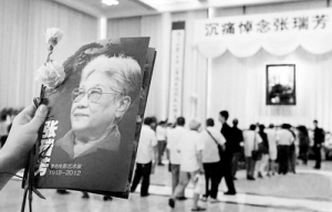 因前来送别者众多,现场安保也十分严格。一大早赶来的上海影迷徐家德未能进入哀思会现场,手持张瑞芳画像的他并不遗憾,“我就是来送送她,不能进去也没关系,喜欢她的电影20多年,就希望她一路走好”。