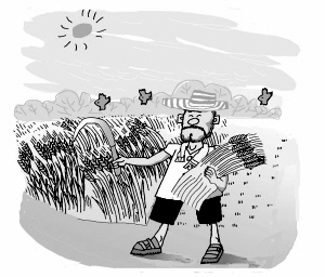 父亲小心翼翼地扶着母亲割了一会儿,又从母亲手里接过镰刀开始弯腰割麦。他那庄严的神情就像一个虔诚的佛教徒要去面见佛祖一样。