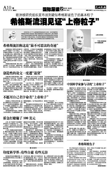 希格斯流泪见证“上帝粒子”