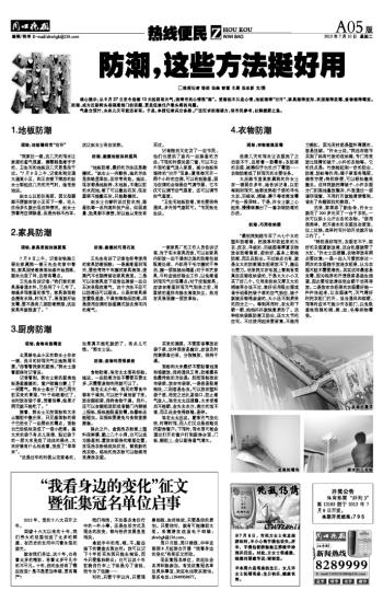 气象台预计,未来几天可能还有雨。于是,本报记者兵分多路,广泛征求防潮秘方,供市民参考,以解燃眉之急。
