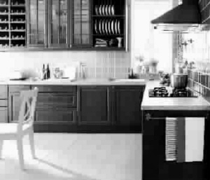 2.乡村风——沿墙面建造工作台形成“L”形的厨房结构,并搭配深色系家具使得中间空出的空间显得更加宽敞。这样简单的空间划分和打造使都市中狭小厨房能给人宽广的感觉。