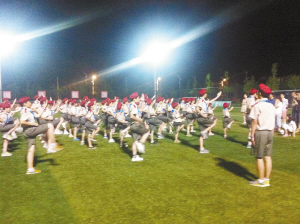 7月12日下午,历时7天的本报小记者军事历奇夏令营圆满闭营,近50名本报小记者经过军队生活的磨练,从郑州“当兵”归来。图为当晚本报小记者在市体育中心丰厚足球俱乐部向家长做汇报演出。晚报记者 张劲松 摄