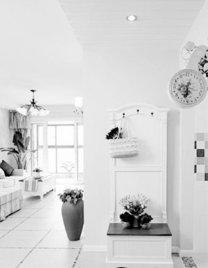原本米白色墙面在视觉上扩大了空间,可以在墙面上选择搭配几块手绘咖啡色小方块,或者是原木深色加上黑白老照片的镜框,活跃了空间的整体氛围,简洁而不失优雅。