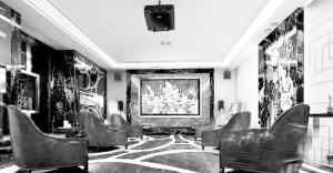案例4 古典豪华:空间比例得体,天花无过多装饰,反而凸显工艺细节,照明以二次光源为主,使空间更凸显气氛,墙面以杏色硬包和黑镜磨砂印花为主,地面以艺术地毯铺贴,功能偏向AV家庭影院。