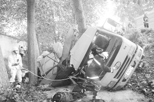 货车会车不当 侧翻污水沟中