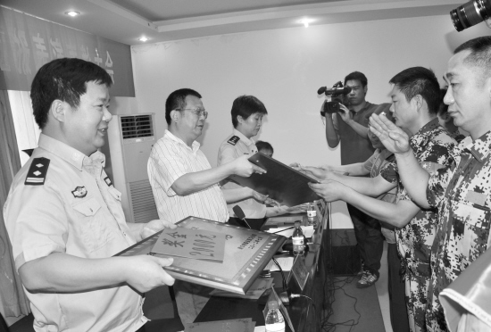 近日,周口市保安服务公司召开2012年上半年度总结表彰大会。会议对表现优秀、成绩突出的先进集体和个人予以表彰,各分公司、直属大队以及先进个人百余人参加了会议。图为周口市保安服务公司总经理韩国华(左一)向先进个人颁发奖牌与奖金。记者 黄佳 通讯员 许方方 摄