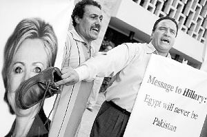 对于希拉里的来访,埃及民众并不欢迎,他们自发组织游行队伍到美国大使馆门前抗议,有的人还将皮鞋拍到希拉里的照片上,要求希拉里离开埃及,并打出“不要试图干预埃及内政”等标语。