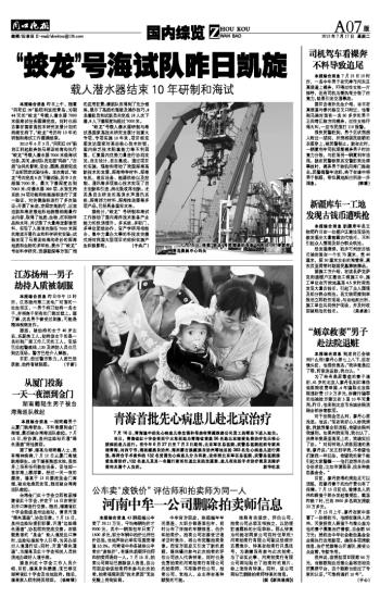 “蛟龙”号海试队昨日凯旋