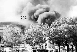 客车车窗玻璃全部震碎,车体左侧和顶部烧黑,停车场浓烟滚滚,机场随后关闭。