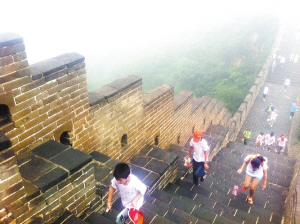 记者昨日在小记者信箱里看到了很多小记者写的有关登长城的作文,其中一篇写到:雄伟的长城啊,这座古时用来防御外来侵略者入侵的古老建筑,如今成为中外游客游览观光的旅游胜地。它凝聚着多少中国劳动人民的汗水和智慧!它向全世界展示着它雄伟的风姿和勤劳、勇敢、坚强不屈的中国龙的精神!