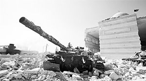 7月22日,叙利亚小镇阿萨兹,政府军和反对派武装交火后的场景。阿萨兹战略地位重要,离第二大城市阿勒颇仅30公里。