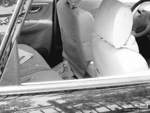 二、汽车座椅上的头枕。汽车座椅上的头枕也是一个很好的破窗工具,将头枕从座椅上拔下,用那两个尖锐的插头敲打侧面玻璃,实验证明也具有很好的破窗效果。