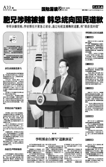 胞兄涉贿被捕 韩总统向国民道歉