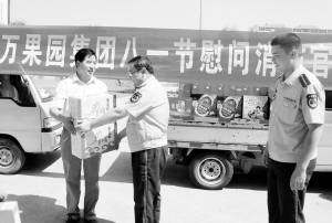 “八一”建军节即将来临之际,河南万果园集团工作人员来到市消防支队进行慰问,以表达对人民军队的深切爱戴之情。