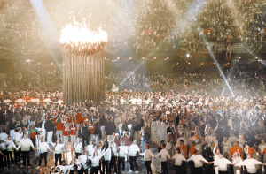 27日晚,开幕式进行许久,体育场“伦敦碗”内都不见主火炬塔踪影。尽管此前各种猜测满天飞,但谁也没想到,主火炬的奥秘就在每个代表团入场时携带的铜质花瓣里。子夜零时,当环绕一周、象征204个参赛国家和地区的铜花瓣依次燃起,最终汇成一个巨大的主火炬,亿万观众才恍然大悟。