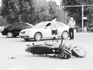 本报讯 7月28时16时许,事故民警接到指令,周口市区太昊路与工农路交叉口发生交通事故,一辆小轿车和一辆摩托车相撞,造成摩托车的驾驶员和乘客受伤。