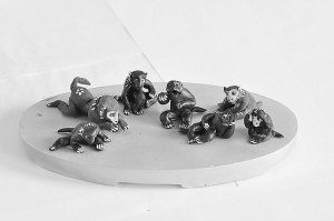 陈氏泥猴的奥妙究竟在哪里?陈新建告诉记者说,陈氏泥猴不仅具有观赏性,而且具有非常深厚的象征意义,每个泥猴无论大小,两只耳朵相通,从左边耳朵吹气,能从右耳朵出气,预示着该听的听,不该听的,左耳朵听右耳朵冒。陈氏泥猴的工序繁杂,但工具非常简单,仅仅是一根竹筷,或者是一把梳子和剪刀。陈氏泥猴的用材简单,是普通黄胶泥,捏泥猴之前先将黄胶泥晒干,碾碎过筛,加上棉花或纸浆,再掺水和匀,用木头捶打数遍,使胶泥变得柔软细腻。经过搓、拉、捏、掐等工序和过滤、醒泥之后,便成了捏泥猴的主原料。陈新建说,刚刚捏好的泥玩具容易变形,祖上的工艺是把它放在锅台上,待烘热冒烟时,赶忙用黑或棕色颜料打底。之后,在晾干的泥玩具上涂上各种鲜艳的色彩,使它与动物的造型协调一致。经过彩绘后的泥猴,在阳光的照射下五彩缤纷,不知情的人还真不知道这栩栩如生的泥猴竟取材于泥土。