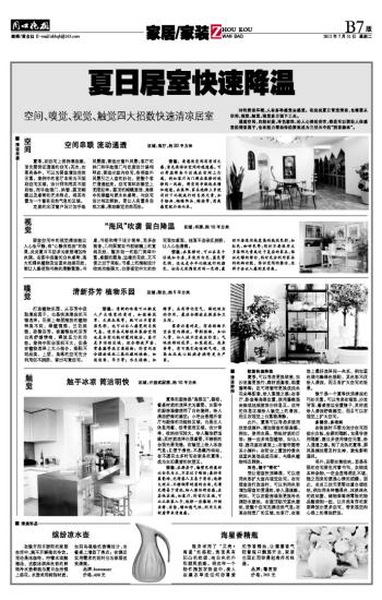 对待居室环境,人有多种感觉去感受。在炎炎夏日营造清凉,也需要从空间、视觉、触觉、嗅觉多方面下工夫。