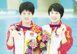 本报综合消息 7月31日,奥运会跳水项目第三枚金牌产生。在女子双人10米跳台决赛中,中国名将陈若琳与汪皓的强强组合表现完美,以368.40分夺得金牌,实现了中国在该项目上的奥运会四连冠。陈若琳继北京奥运会后蝉联该项目的冠军,同时夺得了个人的第三枚奥运会金牌。