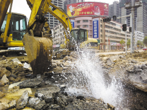 “铁家伙”闯祸 挖断供水管道