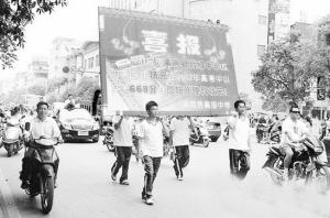 本报综合消息 4名身穿校服的小伙子合力扛起一块大幅“喜报”,一名胸戴大红花的男生穿过天窗站立在一辆黑色轿车中,紧随其后的是数十人组成的腰鼓队,闹市区行人纷纷驻足围观。7月31日,一则“恩施状元游街”的微博引来众多网友围观。