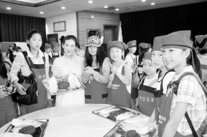 在韩国的几天里,小记者住上了韩国的榻榻米,品尝到了韩国传统的蘑菇火锅、泡菜、烤肉、人参鸡汤等特色菜肴。7月25日10时20分许,小记者来到春川市丰味泡菜馆。在这儿,他们聆听了韩国第38位文化艺术名人泡菜大师俞正仁讲解的泡菜制作艺术,了解了韩国泡菜历史,并且亲自动手,一丝不苟地体验了制作泡菜的全过程。看着自己制作的泡菜,小记者李知一得意地说:“哈哈,我也学会制作韩国泡菜了,有机会我要给爸爸妈妈露一手,让他们也尝尝我亲手制作的韩国泡菜。”