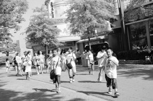 在橡皮艇漂流现场,等待漂流的游客队伍已经排到场地大门口了,可陆家俊、王思成、霍硕硕等小记者还是非得过上一把瘾,他们排了将近一个小时的队,才排到跟前。“太刺激了,我还想再漂一回。”离开漂流场时,小记者王思成还恋恋不舍地说。