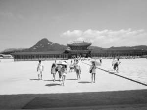 穿过国立民俗博物馆,小记者来到了朝鲜时代故宫——景福宫,从王室就寝的康宁殿、交泰殿,国王处理朝政的思政殿,到国王朝见百官或接见使节的勤政殿,每一处建筑都凝聚着韩国人民的智慧。小记者穿过这一座座庄严的宫殿时,不禁被韩国人民的聪明智慧所折服。“没想到韩国往日的皇宫会这么壮观,我要多拍一些照片,记下这里的每一处建筑。”小记者陆家俊边拍照边兴奋地说。