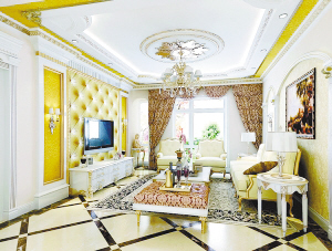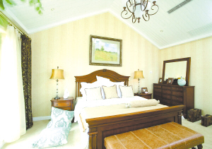 儿童卧室里,独特的蓝白条纹床单首先夺人眼球,接着是明黄色的墙面,卡通画点缀其上,显现无限童趣。当然,小主人最喜欢的仍然是坐在像草坪般厚而舒服的地毯上,和他最好的玩偶朋友们说话、戏耍。(计安丽)