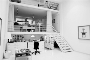 画家古丽斯坦对空间设计有着惊人的领悟力,她的工作室室内空间很高,布置得令人惊艳。高挑的室内空间和画家的艺术作品打造出油画工作室的艺术气息。因为整体空间通透简约,在角落中利用镜框、画作营造出不规则的纷杂感,也为工作室增加不少的艺术氛围。
