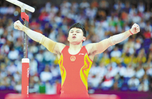 本报综合消息 北京时间8月7日,伦敦奥运会体操项目男子双杠决赛,中国选手张成龙和冯喆联袂出战。结果冯喆完美发挥取得15.966的高分夺冠,张成龙出现失误只排在第9。