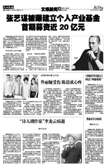 张艺谋被曝建立个人产业基金首期募资近20亿元
