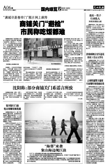 沈阳称:部分商铺关门系谣言所致